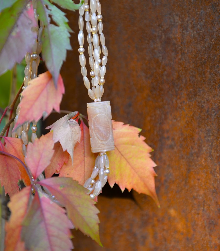 Schmuckstücke Oktober 2016 Elisabeth Benndorf-Lang vor 9 Jahren Rosa Mondstein, rosa Perlen + geschnittener Achat aus Asien