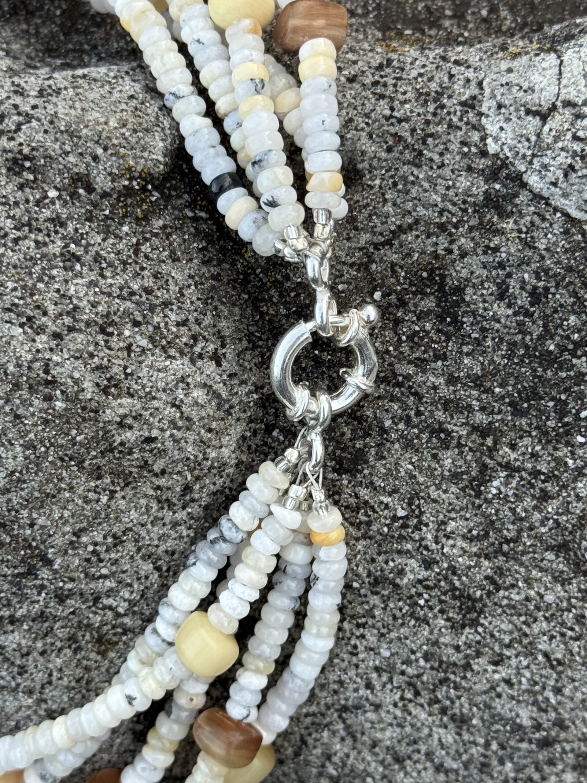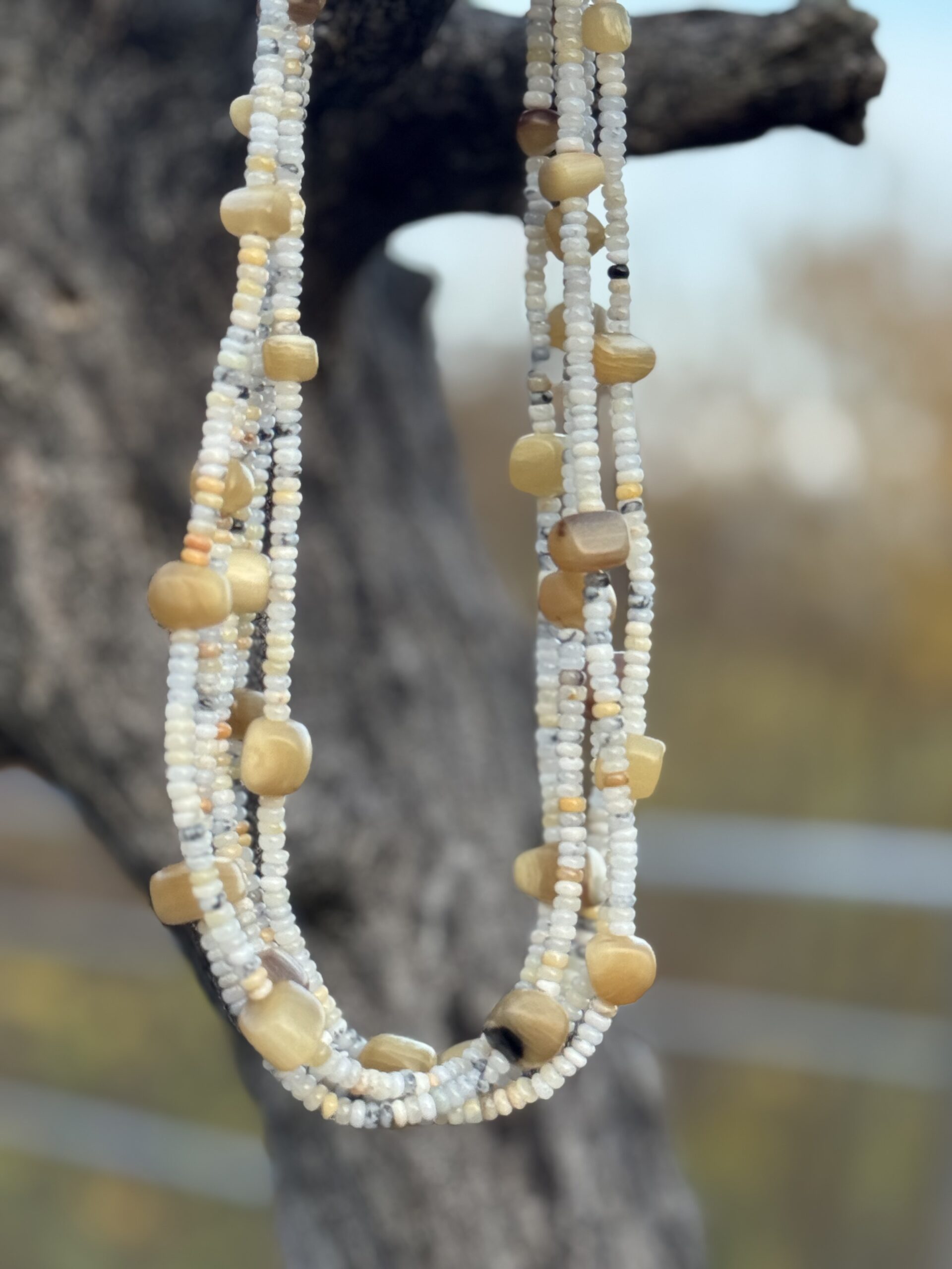 Collier aus Dendritenquarz und Horn